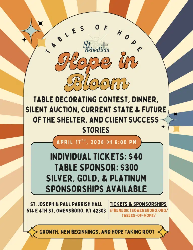Tables of Hope is St. Benedict’s Homeless Shelter’s annual fundraiser, bringing our community together for an evening of generosity, beauty, and purpose.